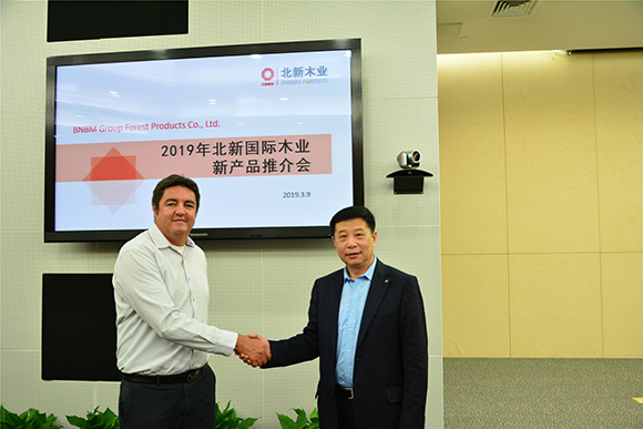 北新木业总经理王卫仁、副总经理李建立与LP集团南美公司供应链总监Claudio