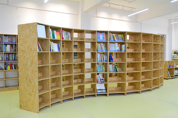 欧松®作为大赛的独家板材赞助商,提供欧松®定向结构板(OSB)为“悦”读空间的主体材料。欧松®OSB采用无醛添加生产工艺生产,环保安全。明媚的金黄搭配天然的木质纹理,营造亲切、自然、温馨的空间。