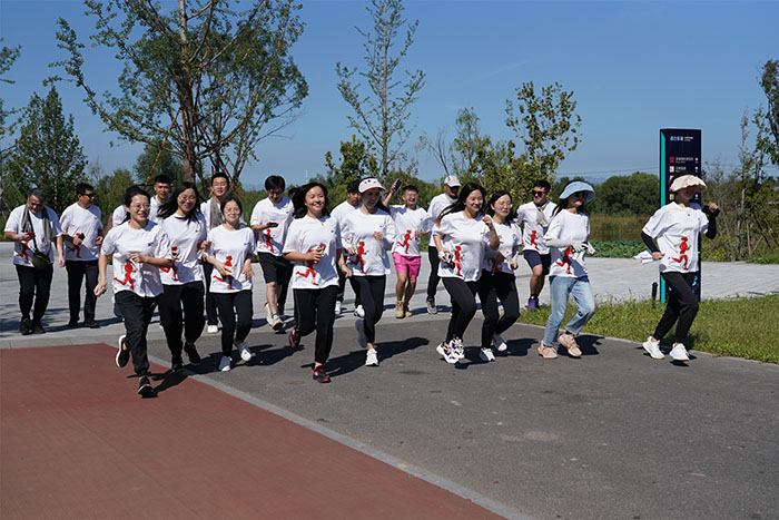 亲近自然、绿色健康是北新木业一直推崇的生活理念。压腿、伸腰、活动关节……北新木业总部参加长跑的人员早早来到北京温榆河公园做长跑前的热身准备。上午十点,开跑口令一响,大家争先恐后飞奔而出。三公里、四公里、五公里……年轻员工率先冲过终点,年纪大的员工也相互鼓励,坚持跑过终点。