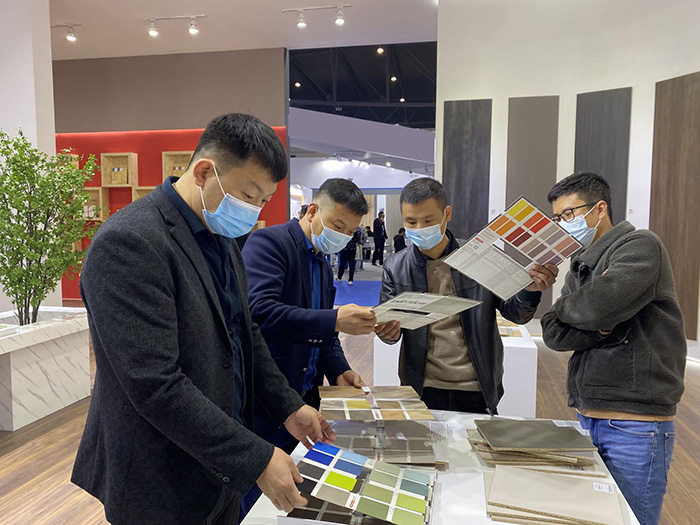 百搭的“白”、优雅的“灰”、清新的“木纹”,近20款新花色,让大家眼前一亮纷纷驻足“观赏”、洽谈。