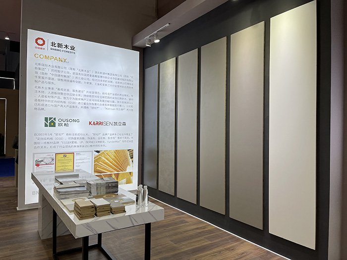 展会上,我们的明星产品欧松®BERNECK可饰面家具板和超级新品Karrisen 凯立森®可饰面产品同样备受关注。