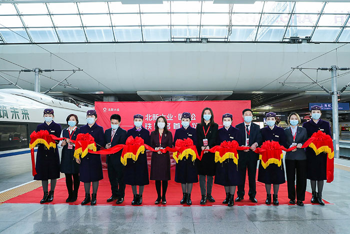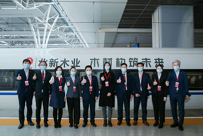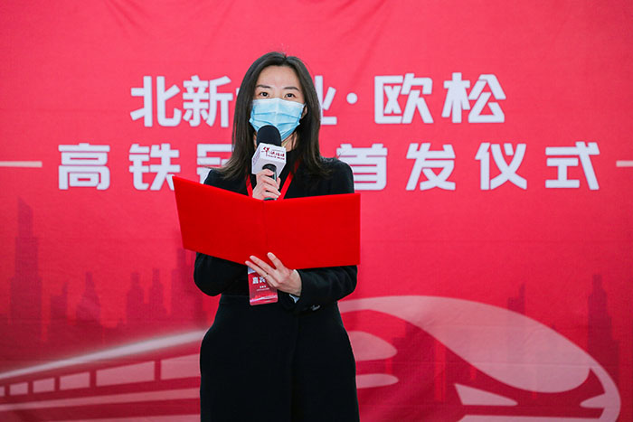 首发仪式上,北新木业副总经理张晓芳在致辞中表示,此次北新木业本着“木材构筑未来”的愿景,与中国高铁强强联合,强势推出高铁冠名列车,首次把北新木业、欧松®品牌融入京沪高铁经济圈,这是北新木业品牌战略实施的一个重要里程碑,标志着北新木业由此进入“高铁引擎”传播新时代。