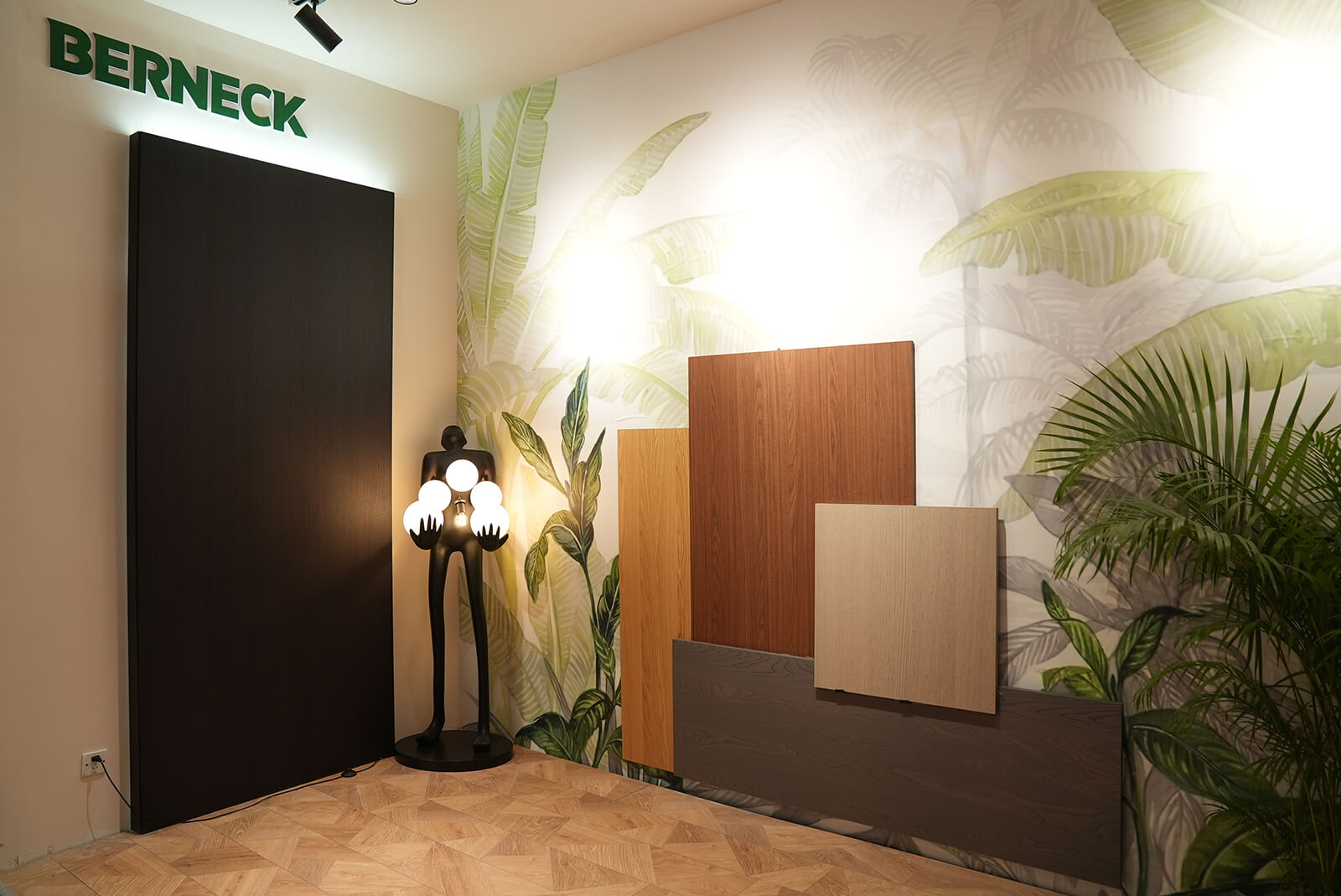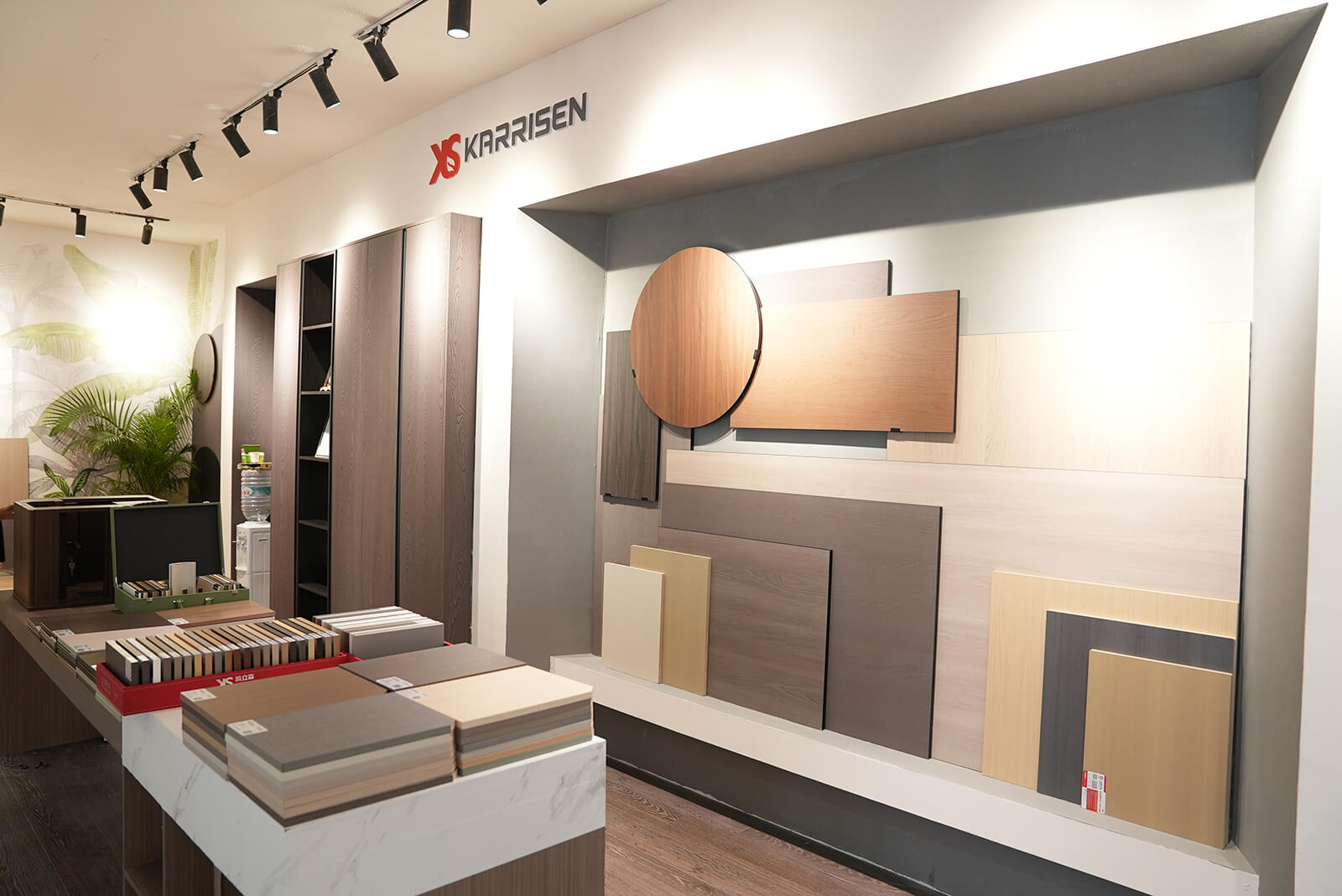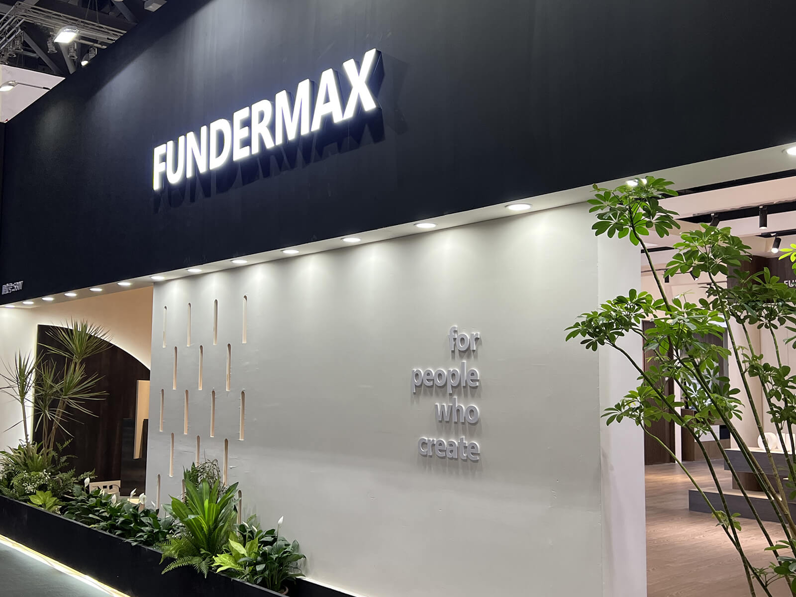 展位空间划分为四个区域:涵盖欧松®Fundermax、欧松®Fantoni、欧松®Berneck和Karrisen凯立森®饰面板的成品家居与花色展示。无论是工艺精湛的圆弧曲面墙体还是门墙柜一体化落地方案,在凸显产品功能性的同时,饰面花色与风格设计既充满潮流与先锋质感,又不失稳重与大气,让人眼前一亮。