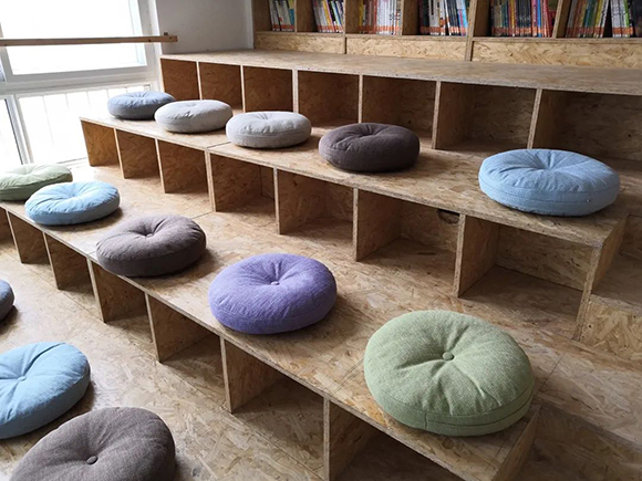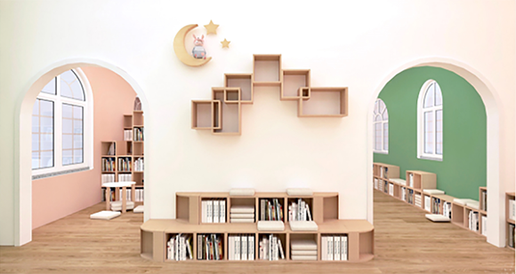 再加入走心的个性化设计:可坐可躺的独立阅读空间、可爱的云朵小桌和软垫,满足上课、存书、借阅等基本功能的同时,更满足了孩子们的探索心和好奇心。